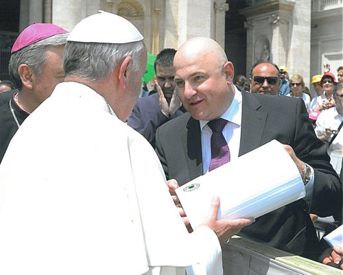 Generalaudienz (Prima Fila) beim Heiligen Vater Papst Franziskus mit der Übergabe eines Kochhutes.