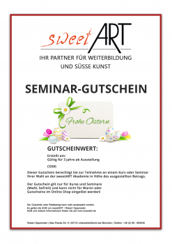 This voucher can be redeemed towards a course or seminar of your choice at the sweetART Academy.