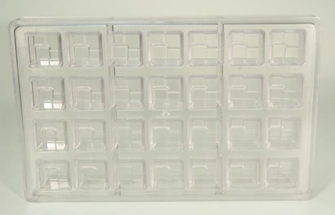 Form for 28 chocolates, made of hard plastic, mold size: 17.5 x 27.5 cm, weight of individual chocolates about 12 g