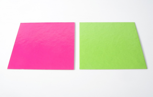What is special about the cake boards, one side is in purple color, the other side in green.